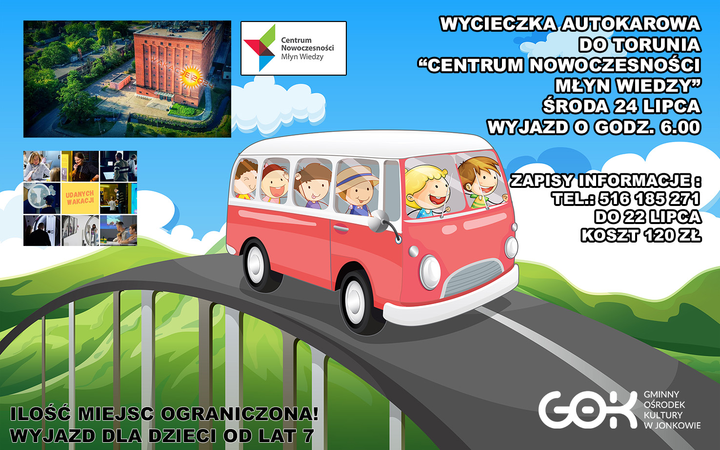 W dniu 24 lipca organizujemy wycieczkę autokarową (dla dzieci od lat 7